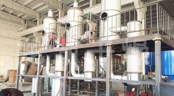 單效或多效降膜蒸發(fā)器,適用于牛奶、葡萄糖、淀粉、木糖、制藥、化工、生物工程、環(huán)保工程、廢液回收等行業(yè)進(jìn)行低溫連續(xù)式蒸發(fā)濃縮,具有傳熱效率高,物料受熱時間短等主要特點,所以特別適用于熱敏性、粘滯性、發(fā)泡性等物料。